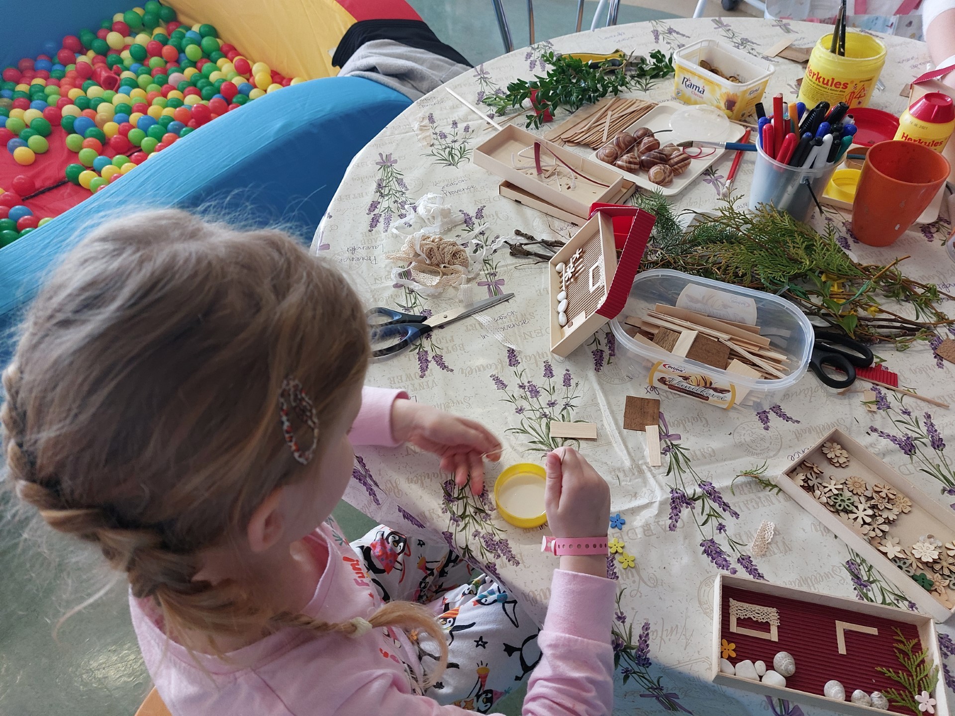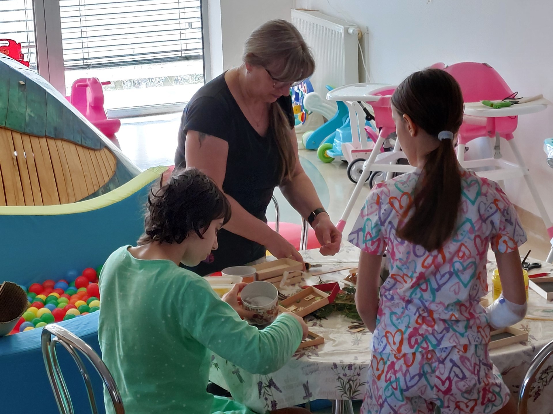 Výtvarná dílna s p.L.Stejskalovou z NNO Cesta pro rodinu Žamberk byla tentokrát na téma "Jarní tvoření - domečky".
