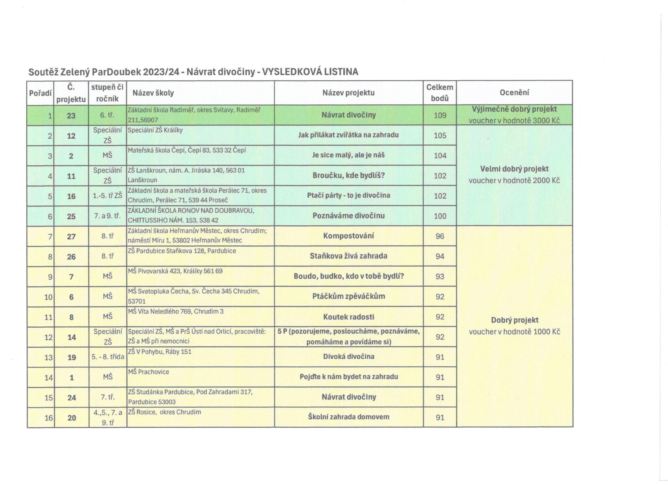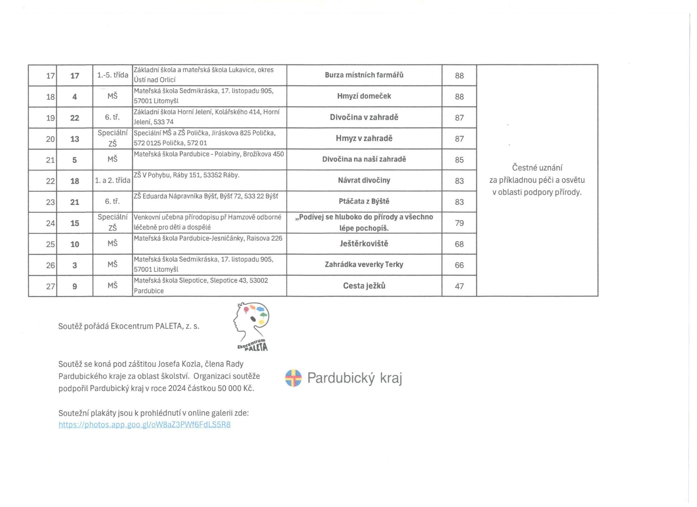 Slavnostně jsme zakončili školní rok 2023/2024. Obdrželi jsme vyhodnocení soutěže "Zelený ParDoubek 2024", které se naše ZŠ zúčastnila, za pomoci dětí a vedoucích klubu "Dědečkova dílna" z NNO Cesta pro rodinu Žamberk. Děkujeme a blahopřejeme ♥