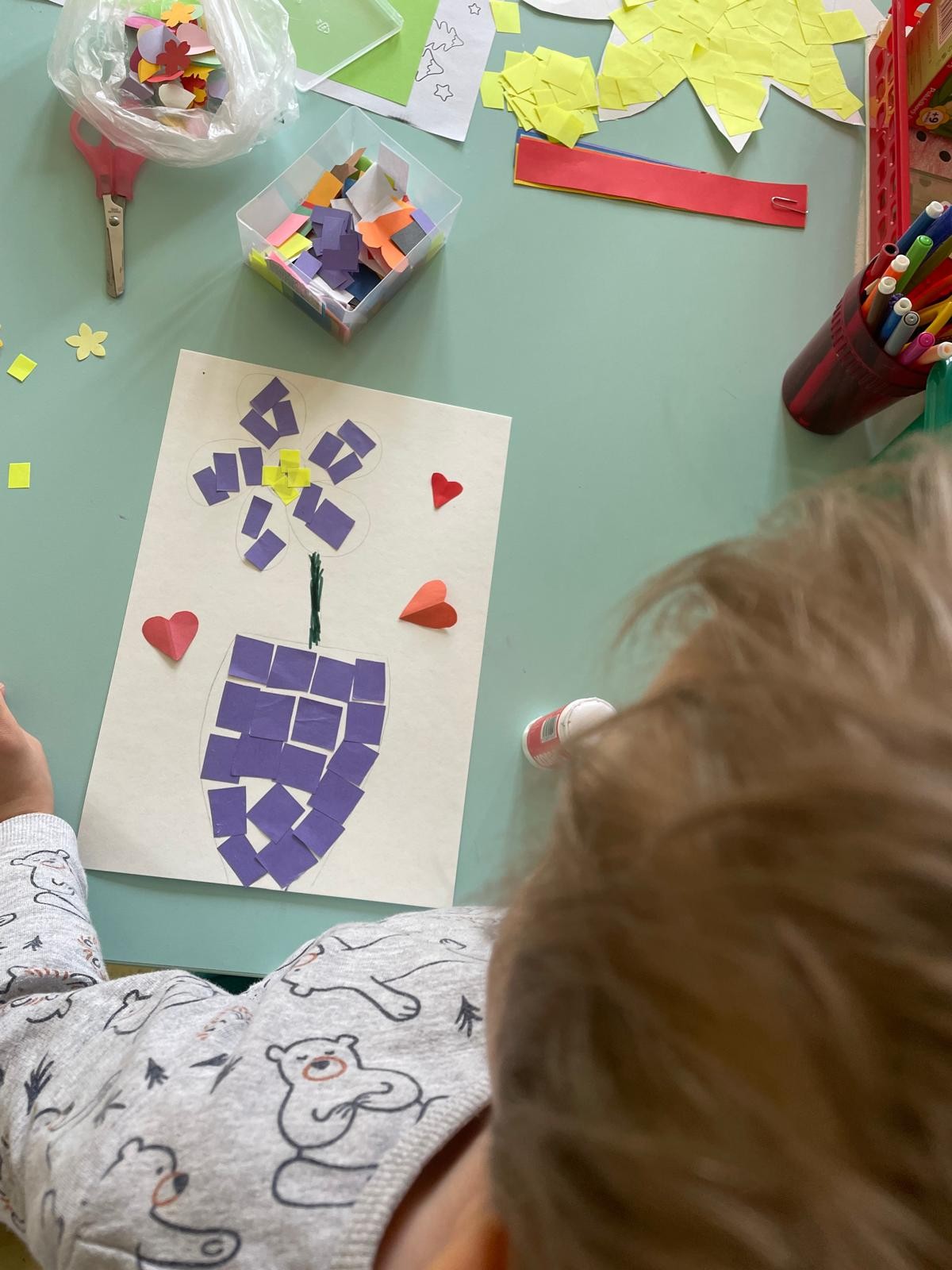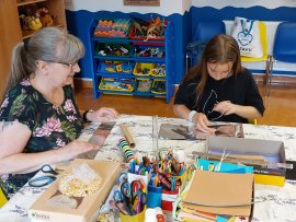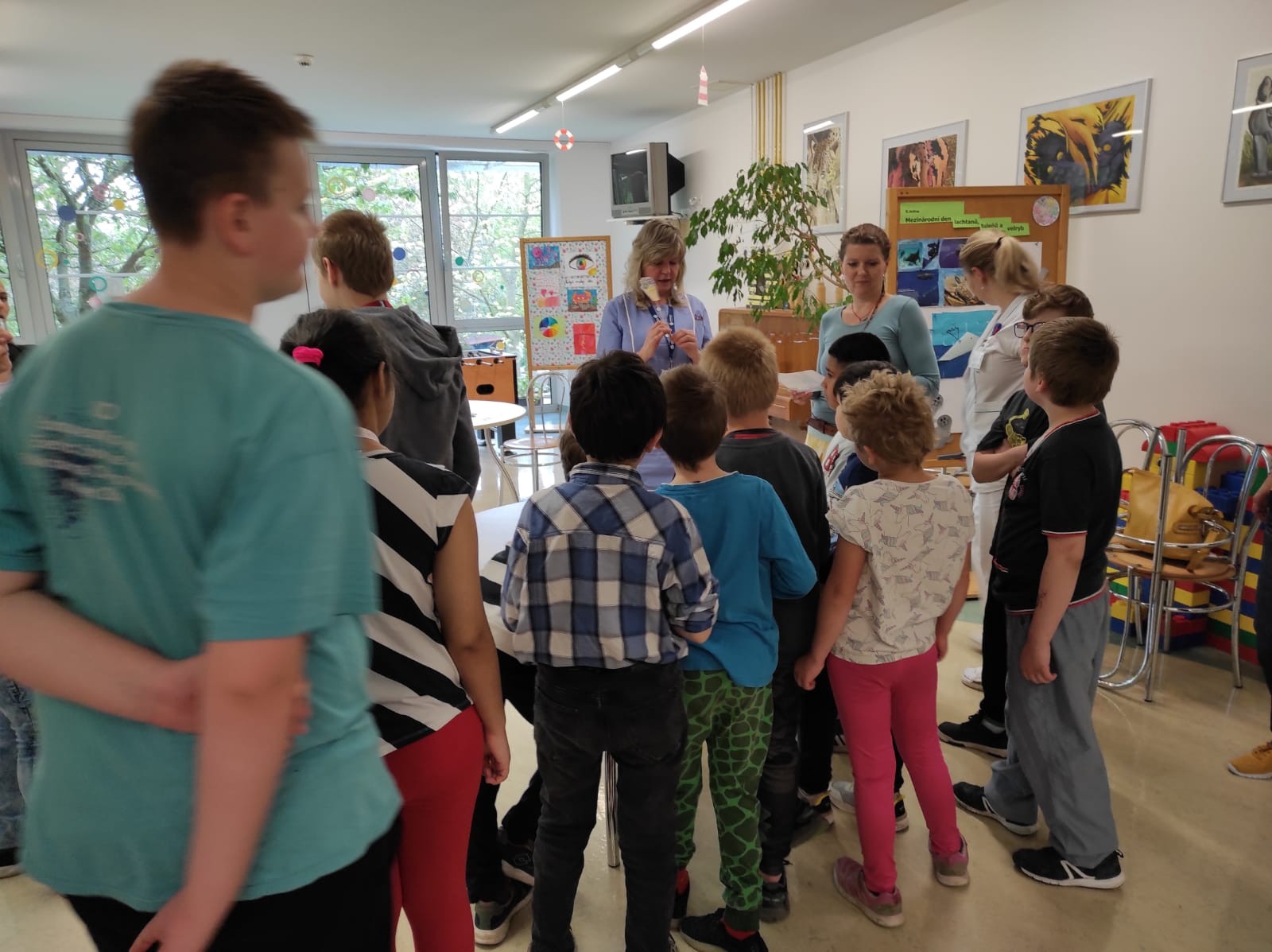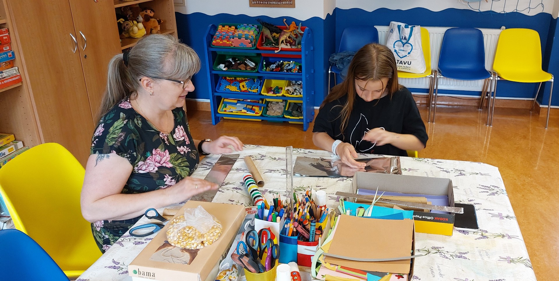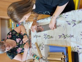 Výtvarná dílna s p. L. Stejskalovou z NNO Cesta pro rodinu Žamberk byla tentokrát na téma "Dešťová hůlka".