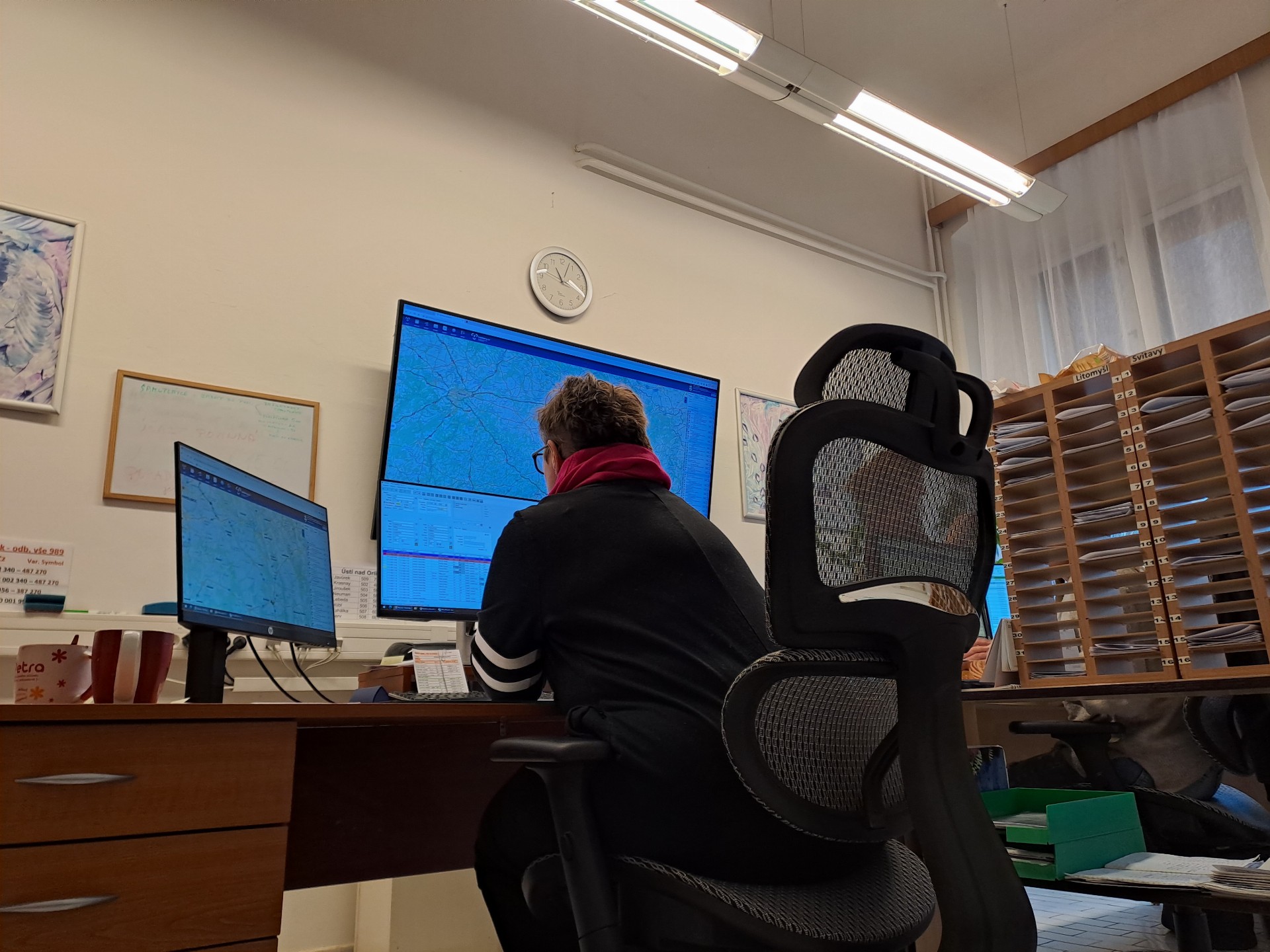 Jedna sanitka ZDS může najednou vézt až čtyři klienty. „Například když jedete do Ústí nad Labem, víte, že tu cestu spojíte s Prahou. Vyfiltrujete všechny naplánované jízdy směr Praha, podíváte se, na jaké jsou časy, a pak můžete naplnit sanitu čtyřmi lidmi, kteří jedou na vyšetření směr Praha. Cestou tam je všechny rozvezete, cestou zpátky posbíráte. A máte jednoduše naplánovanou jízdu, plně využité auto a zaměstnaného řidiče,“ pokračuje Magdalena Bláhová. Nový informační a řídící systém podle ní některé věci zásadně změnil: „Je to jednodušší, dřív si to dispečeři všechno psali na papírky, museli si pak všechno pamatovat. Takhle pracují s jednou tabulkou v počítači.“ Dispečink sídlí v budově C v Litomyšlské nemocnici a funguje nepřetržitě 24 hodin denně. Dva dispečeři mají před sebou kromě dvou monitorů ještě velkou obrazovku, kde vidí polohu jednotlivých vozů. I to jim v plánování jízd pomáhá.
